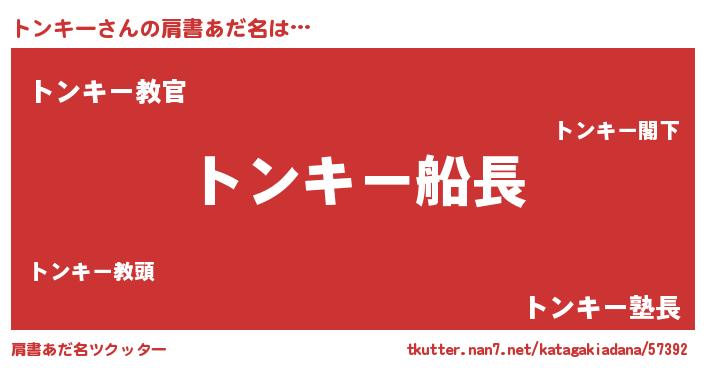 | 意味不明あだ名 | 『住所不定無職トンキー(9歳)』 |