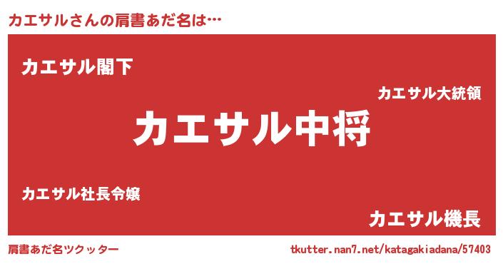 | ヒーロー風カッコイイあだ名 | 『超時空戦士カエサル』『仮面カエダー』 |