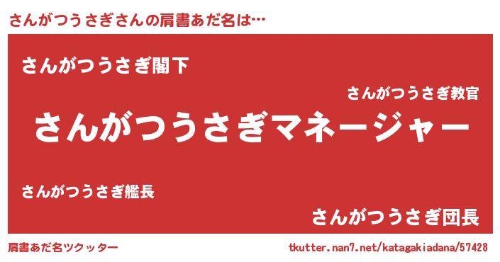 | ヒーロー風カッコイイあだ名 | 『超時空戦士サンガツウサギ』 |