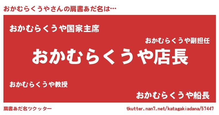 | 男性向けラノベタイトル風あだ名 | 『おかむらくうやの憂鬱』 |