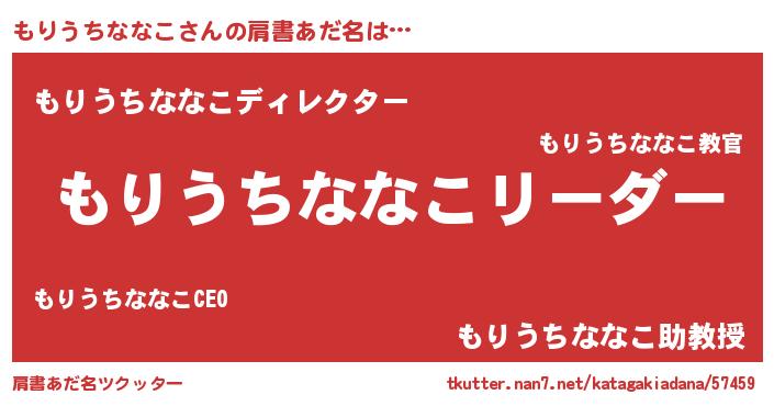 男性向けラノベタイトル風あだ名 | 『もりうちななこの嫁は女の子じゃないと思った?』 |
