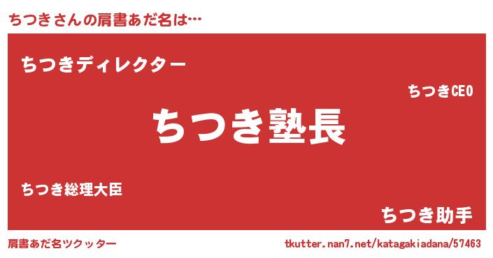 | 女子向けラノベタイトル風あだ名 | 『ちつきは平凡を望む』 |