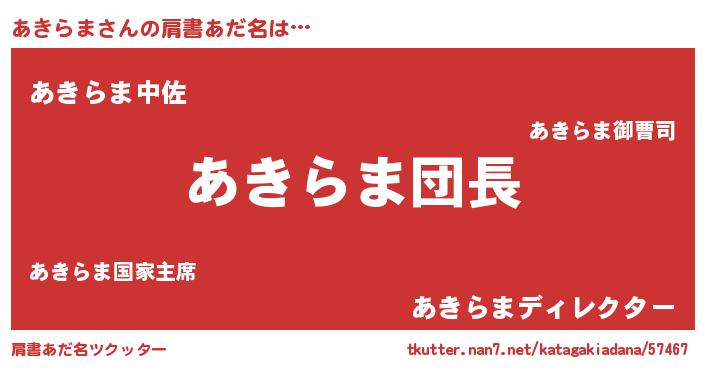 | 意味不明あだ名 | 『とにかく怪しいあきらま』 |