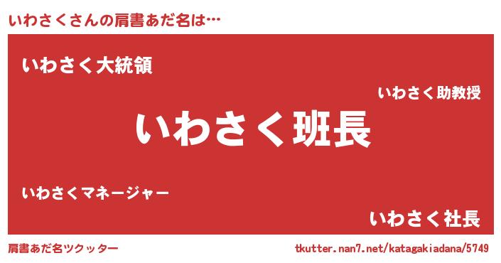 | ポケモン風あだ名 | 『ヒイワサク』『イワサダネ』 |