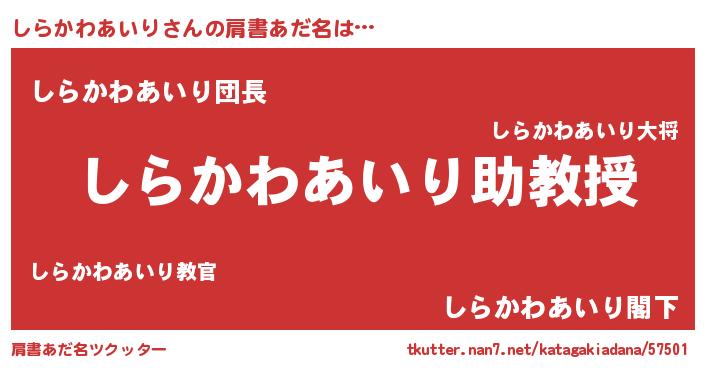 | ヘコむあだ名 | 『しらを』『しらかわあいり(小並感)』 |