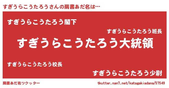 | ファンタジー風あだ名 | 『エターナルスギウラコウタロウー』 |
