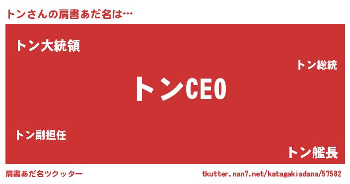 | 男性向けラノベタイトル風あだ名 | 『トンアートオンライン』『緋弾のトン』 |