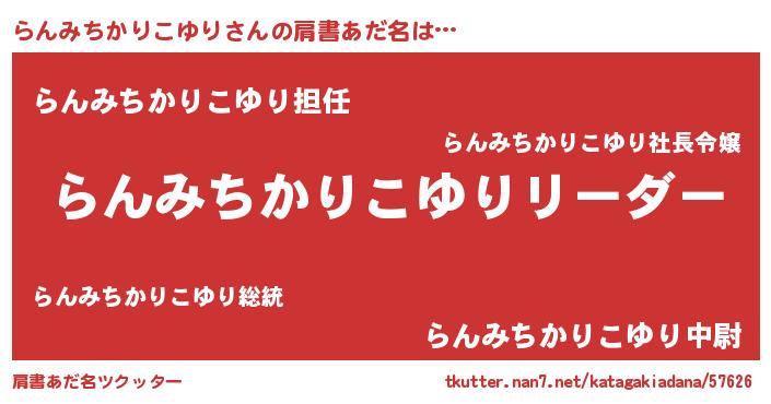 | 女子向けラノベタイトル風あだ名 | 『らんみちかりこゆりの卵を拾いまして』 |