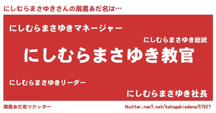 | 意味不明あだ名 | 『住所不定無職にしむらまさゆき(81歳)』 |