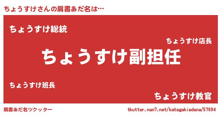 | ヒーロー風カッコイイあだ名 | 『ネオチョウスケ』『最強戦士チョウスケ』 |