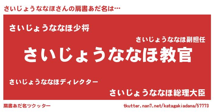 | 男性向けラノベタイトル風あだ名 | 『この素晴らしい世界にさいじょうななほを!』 |