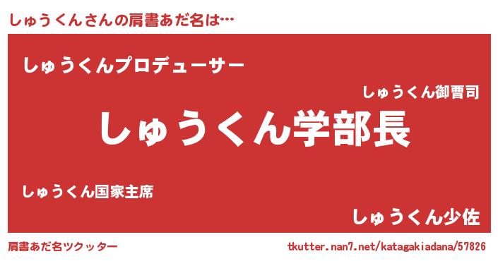 | ヒーロー風カッコイイあだ名 | 『慈愛の使者しゅうくん』『銀牙騎士シュ』 |