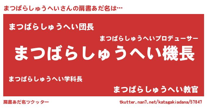 | 意味不明あだ名 | 『とにかく怪しいまつばらしゅうへい』 |