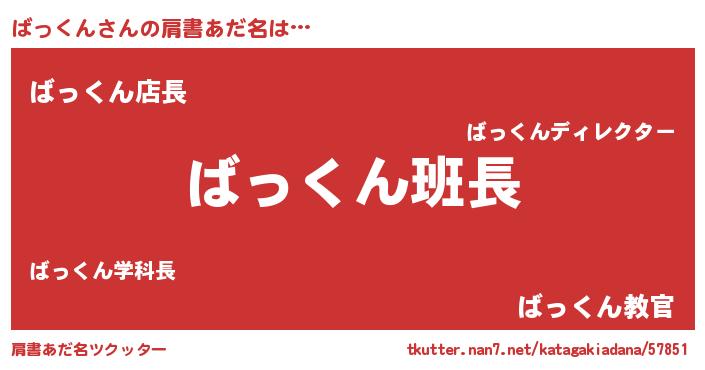 | ヒーロー風カッコイイあだ名 | 『黄金騎士バッ』『スーパーバックン』 |