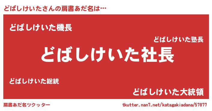 | 男性向けラノベタイトル風あだ名 | 『どばしけいたの憂鬱』 |