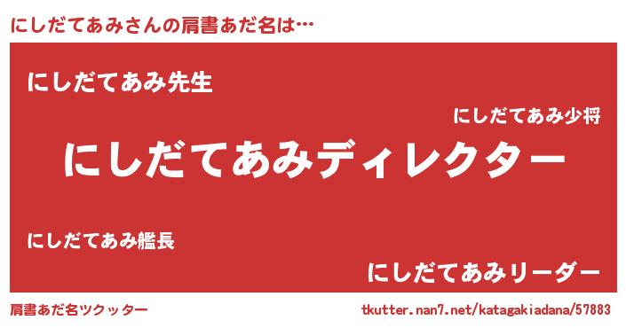 | ヘコむあだ名 | 『にしだてあみ(爆)』『にしを』 |