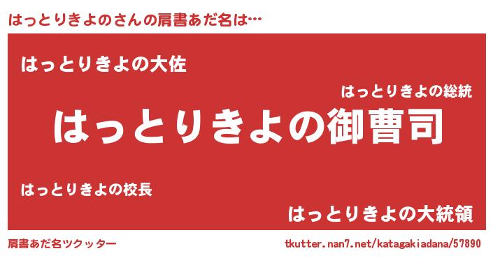 | 女子向けラノベタイトル風あだ名 | 『はっとりきよの姫と円卓の騎士』 |