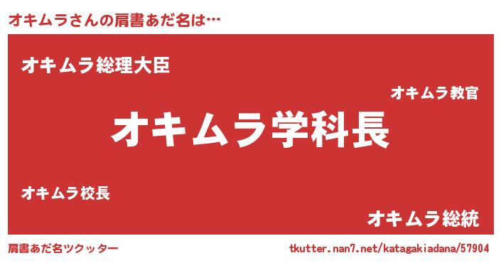 | 男性向けラノベタイトル風あだ名 | 『ノーゲーム・ノーオキムラ』 |
