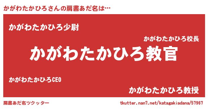 | 男性向けラノベタイトル風あだ名 | 『この素晴らしい世界にかがわたかひろを!』 |