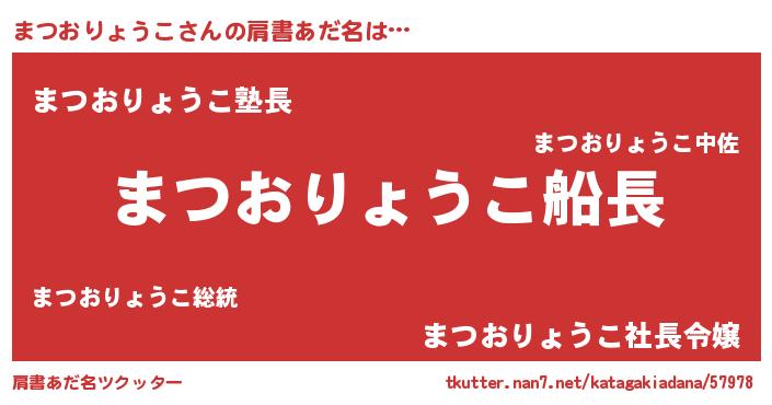 | 胡散臭い通販商品みたいなあだ名 | 『信頼と実績のサプリメント…その名も「まつおりょうこ」』 |