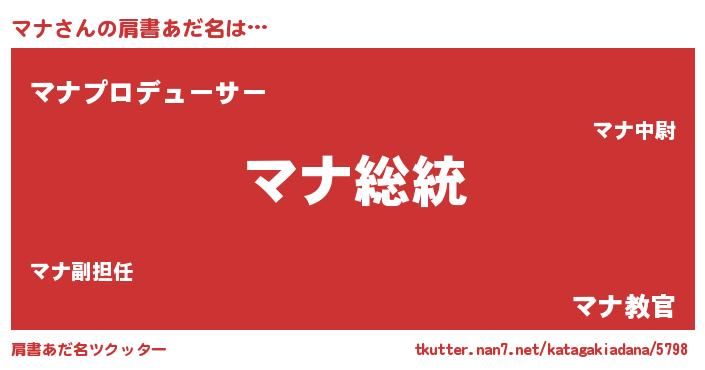 | ヘコむあだ名 | 『マナ(遠い目)』『酢こんぶ』 |