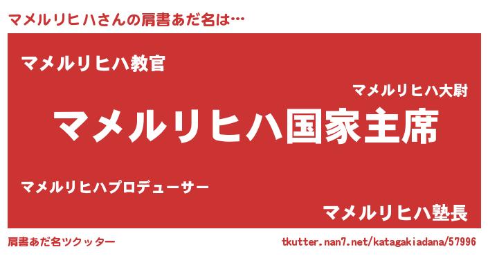 | 欧米人風あだ名 | 『マメルリヒハクリステル』 |