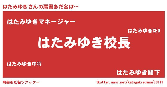 | 意味不明あだ名 | 『永久保存はたみゆき』『自称はたみゆき』 |