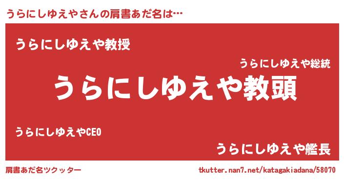 | ヘコむあだ名 | 『うらにしゆえや(笑)』『うらにー』 |