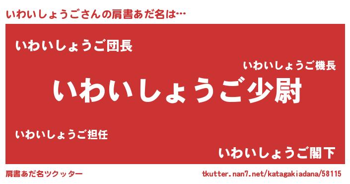 ポケモン風あだ名 | 『イワキング』『ヒイワイショウゴ』 |