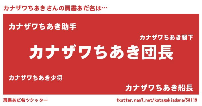 | 意味不明あだ名 | 『とにかく怪しいカナザワちあき』 |