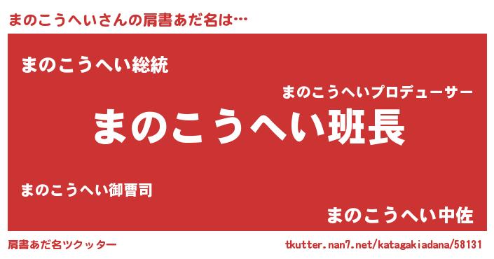 | 女子向けラノベタイトル風あだ名 | 『まのこうへい様がみてる』 |
