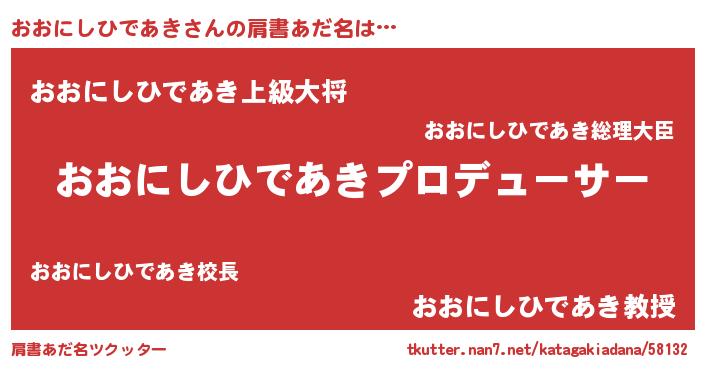 | 男性向けラノベタイトル風あだ名 | 『おおにしひであきに滅ぼされるだけの簡単なお仕事です』 |
