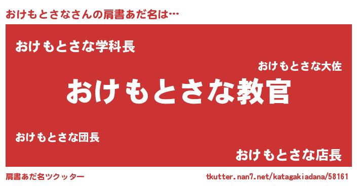 | 男性向けラノベタイトル風あだ名 | 『この素晴らしい世界におけもとさなを!』 |