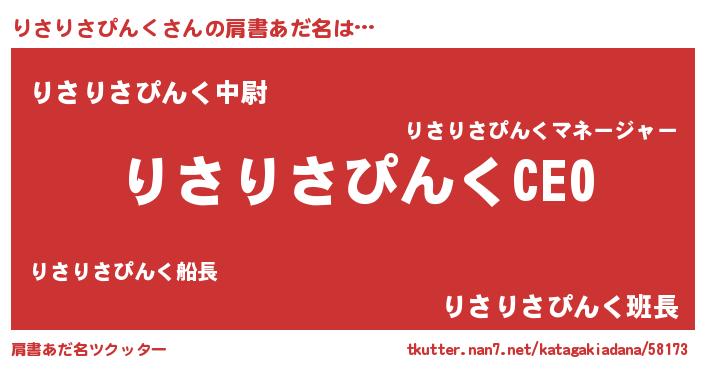 | 男性向けラノベタイトル風あだ名 | 『りさりさぴんくの憂鬱』 |