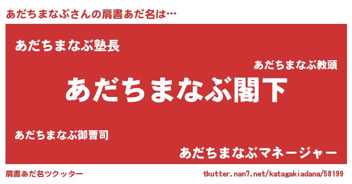 | ヒーロー風カッコイイあだ名 | 『究極戦士アダチマナブ』『暗黒騎士アダ』 |