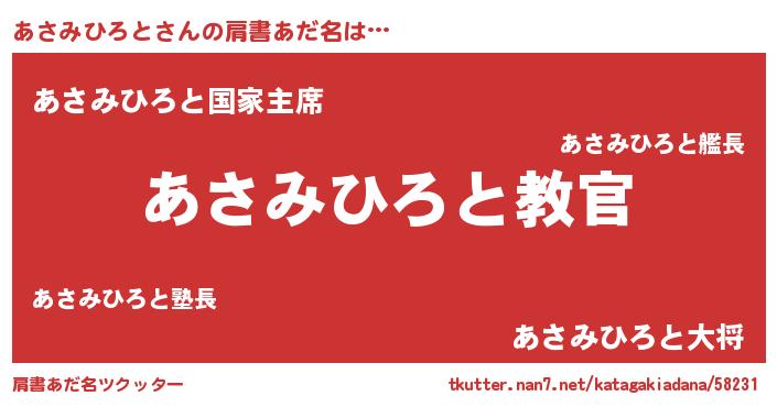| 男性向けラノベタイトル風あだ名 | 『この素晴らしい世界にあさみひろとを!』 |