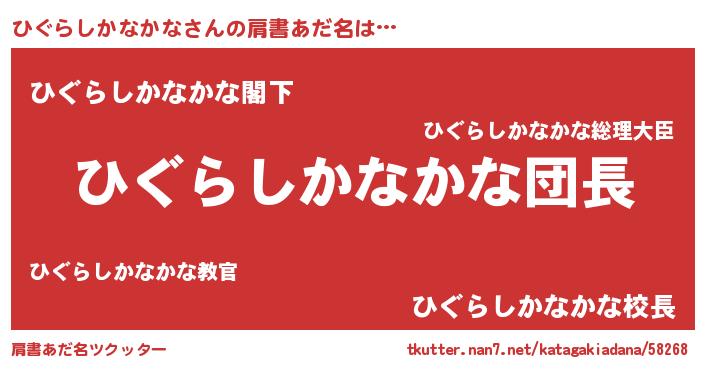 | ポケモン風あだ名 | 『ヒヒグラシカナカナ』『ヒグセウス』 |