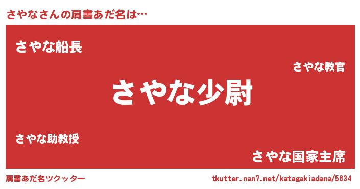 | 女子向けラノベタイトル風あだ名 | 『さやなの玉の輿計画!』『さやな恋絵巻』 |