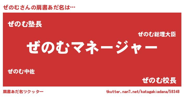 | ヘコむあだ名 | 『ぜのお』『ぜのむ(苦笑)』 |