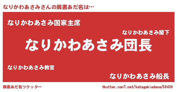 | ポケモン風あだ名 | 『ヒナリカワアサミ』『ナリカダネ』 |