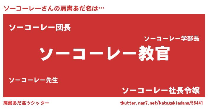 | 意味不明あだ名 | 『住所不定無職ソーコーレー(2歳)』 |
