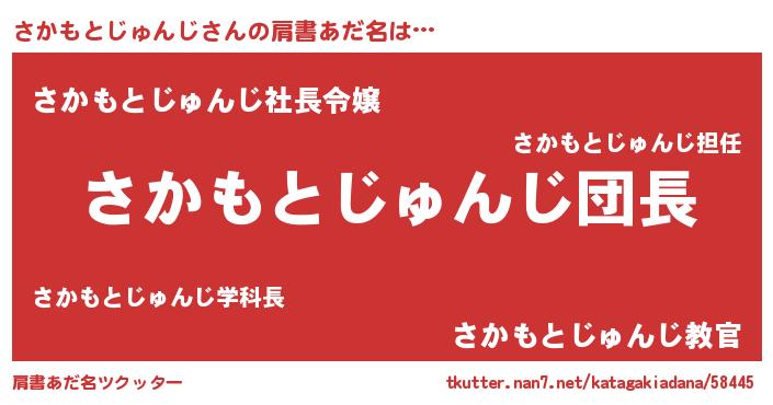 | 女子向けラノベタイトル風あだ名 | 『さかもとじゅんじの卵を拾いまして』 |