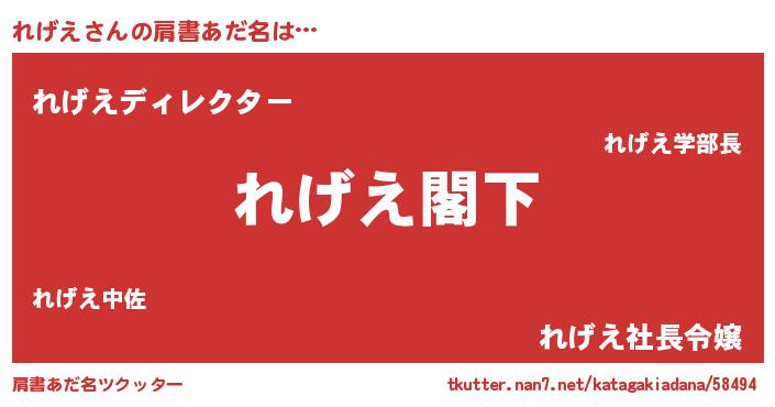 | 意味不明あだ名 | 『自称れげえ』『ペロリンれげえ』 |