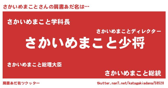| 男性向けラノベタイトル風あだ名 | 『転生したらさかいめまことだった件』 |
