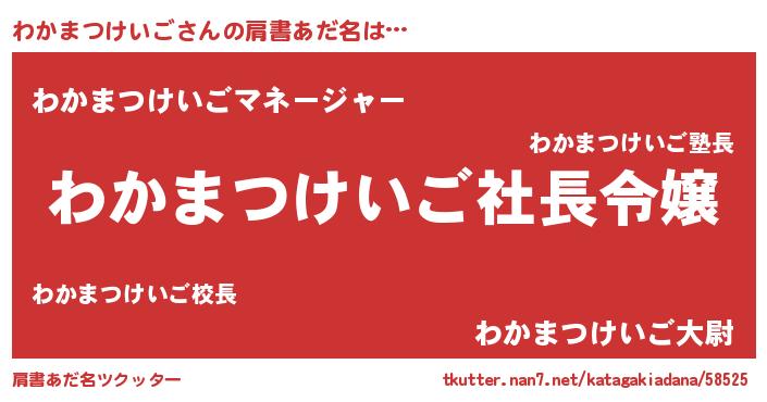 | 男性向けラノベタイトル風あだ名 | 『ワカマツケイゴアートオンライン』 |