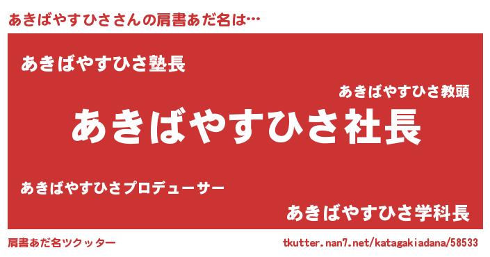| 恥ずかしいあだ名 | 『プリティーあきばやすひさ』『あきちん』 |
