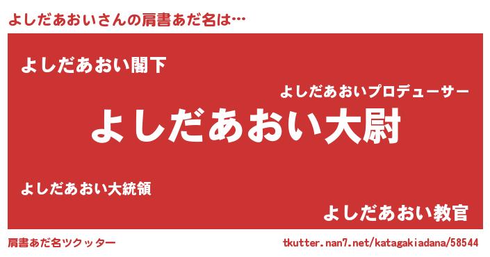 | 女子向けラノベタイトル風あだ名 | 『よしだあおいの玉の輿計画!』 |