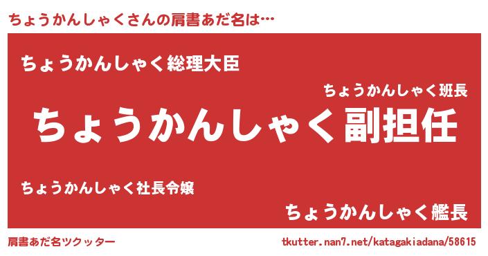 | ヘコむあだ名 | 『ちょうかんしゃく(遠い目)』『なまこ酢』 |