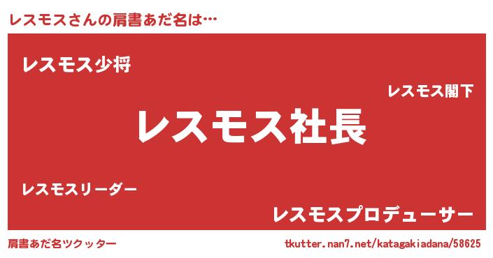 | 男性向けラノベタイトル風あだ名 | 『レスモスの憂鬱』『レスモススレイヤー』 |
