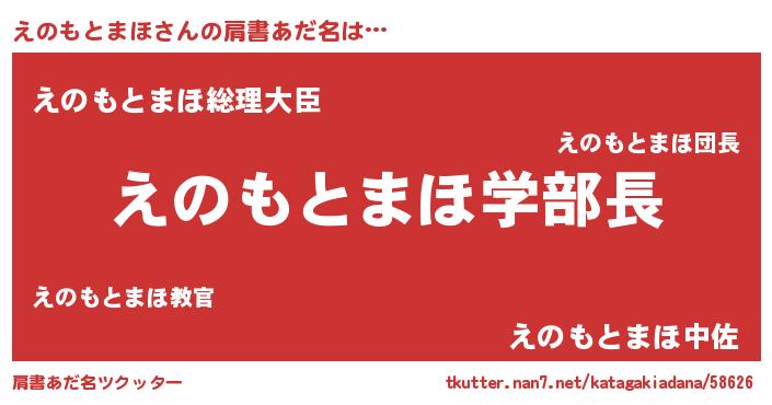 | 男性向けラノベタイトル風あだ名 | 『ノーゲーム・ノーエノモトマホ』 |